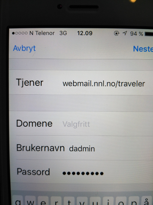 - Brukernavn: kortnavnet (3 bokstaver) uten @nnl.no