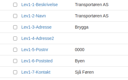 • Disse blir synlig når henholdsvis Lev1-1-Beskrivelse, Lev2-1-Beskrivelse og / eler Lev3-1-Beskrivelse er fylt ut.