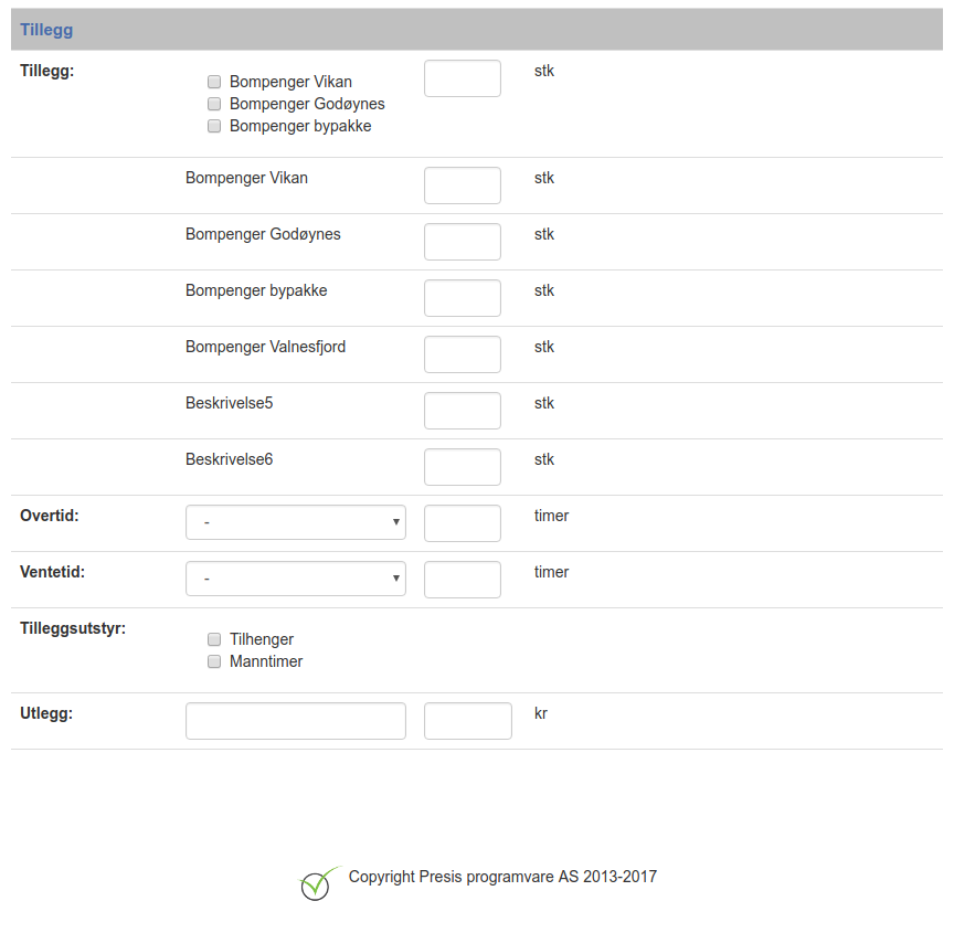 2 massetyper vises normalt. Når du fyller ut siste massetype vil flere automatisk vises.
