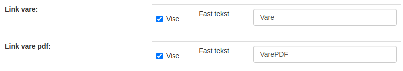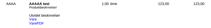 Når feltene Link vare og Link vare pdf er fylt ut på den enkelte varen kan disse tas med i PDF.